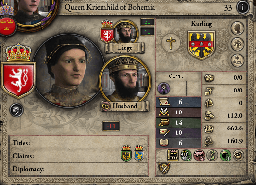 1022年、東フランク王・ヘリベルトが23歳の若さで不審死。彼の母・マリア女王も不審死であった事から、王位を狙う何者かによる暗殺が疑われた。その黒幕として最も疑惑濃厚なのはクリームヒルト・カロリングと、その夫のボヘミア王・ザーヴィシュである。
