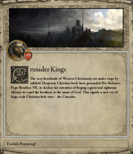 それは「中世盛期」の始まりを告げる言葉である。全てのカソリック者を熱狂させ、「御心のままに!(デウ・レ・ヴォルト)」と叫ばせた言葉である。