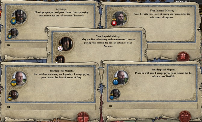 これら所領の整理が済むと、彼らの殆どは身代金と引き換えに釈放されている。