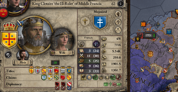 それから暫くは経済の建て直しの為に例の如く東フランクに略奪軍を出すくらいで、スカンジナヴィア帝国に大きな動きは無い。  そこで、この頃の近隣国の様子を紹介しておこう。