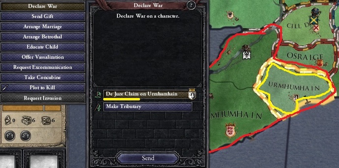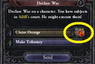 ③家臣の請求権行使では当然いずれ土地がなくなります。この場合は陰謀で家臣の土地を奪いとりましょうアイルランド王国の程度までなら暴君としていきなり投獄(失敗すれば戦争で勝って投獄)して領土を没収しましょう(没収には王権が最低low以上必要)。