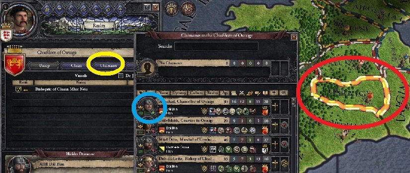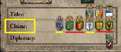 ア 狙った州(赤枠)のclaimants(黄枠)を押します。青枠の人は来てくれる人物です。さらにこの人をクリックして確認すると強い請求権だったのでこの人を自国に招待します(宮廷に来てもらう)。