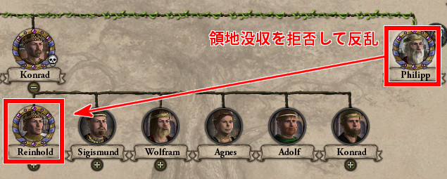 ウ: 皇帝ラインハルトが、彼の叔父・フィリップが所有するブルゴーニュ伯爵領を没収しようとしたところ、フィリップが拒絶して内戦となったぞ!