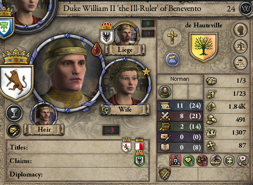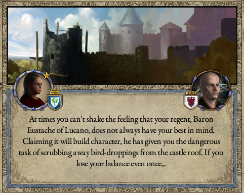 シ: 私は無償で解放されたけど…。 ガックリ…。何もやる気が起きないわ… (Depressed) ベネヴェント公ウィリアム2世: シビル卿、何を弱気になっているのです。 シ: あ、殿下…。