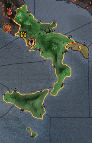 シ: あなた、あらためて状況を整理してみたの。 ウ: うん。 シ: シチリア王国の領域は以前と変わっていないわ。