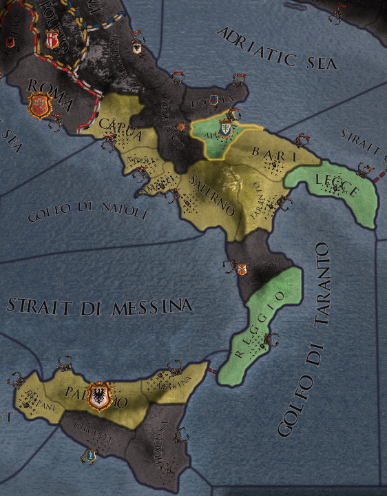 タ: で、これが我がプッリャ公の領地。プッリャ、レッチェ、レッジョの3プロビを所有している。