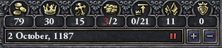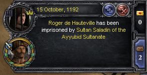 タ: 教皇との戦争は終結。男爵領はシチリア王国のものとなったが…。 ロ: これからが心配だね。 タ: 信仰25を払えば、王の破門を解除するよう封臣の私から要請することもできるんだが、今は教皇が納得してくれなくて決定ボタンをクリックできない。 ロ: 当たり前だよなぁ?(2回目)