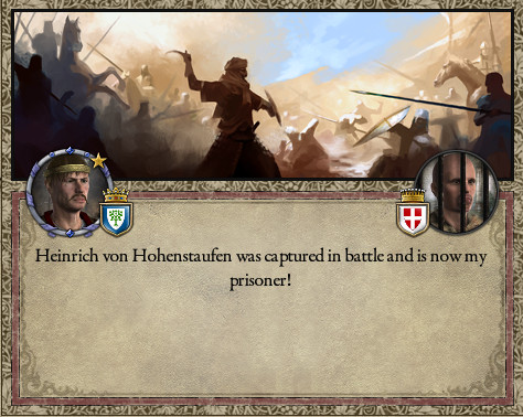 ロ: 3年前からダラダラと続いていた、パヴィーア市長ハインリヒとの戦いもようやく終わった。 野戦でヤツの息子を捕らえたぞ!