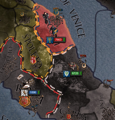 ロ: お、アンコーナの要求権捏造に成功したぞ! 来年5月にシチリアとアンコーナとの休戦期間が終わる。 そうしたらすぐに攻め込もう。