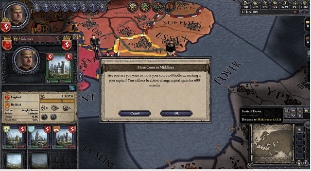 ケント公に就任したジョージ2世の最初の仕事は、遷都だった。 西暦805年6月17日、ケント公ジョージ2世は首都をサセックスの地からミドルセックスに移した。 また、同日いまだ未成年の腹違いの弟アルフレッドにサフォーク伯爵を与えた。