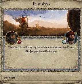 アフリカ王に即位したのを機に、アフリカ王国全土を平定してしまおう。そう考えたYahyaは唯一イドリース朝に従わなかった旧アフリカ王家の残党の討伐を開始する。 王太子Al-Qasimを総大将とする討伐軍はYahyaに見送られながら意気揚々と出発した。