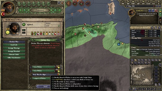 イスラム歴275(897)年1月。イスラム世界に衝撃が走った。Aghlabid朝アフリカ王国,アッバース朝より独立して以来イタリア半島のキリスト教連合軍と互角に渡り合ってきた強国が瞬く間のうちに瓦解したのだ。イドリース朝,カリフを称するなど小国のくせに生意気なと警戒と侮蔑の目で見られてきたシーア派の王国によって北アフリカの強国が終焉に導かれたという事実に、イスラム世界の君主たちの目の色は変わった。「イドリースの王の目的はアフリカ王国にしたように我が国を侵略することではないか?」各勢力はそう疑念を抱くようになり、イドリース朝の動向をこれまで以上に注視することとなる。