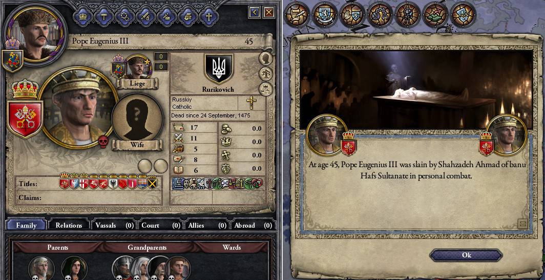 9月24日、教皇エウゲニウス3世は異教徒との戦いで命を落とした。