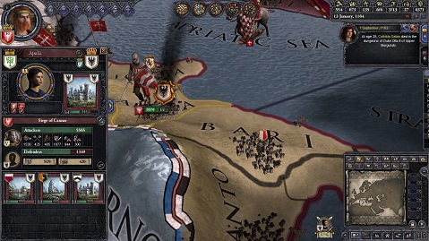 混乱状態にあったシチリアは周辺勢力からの宣戦布告や相次ぐ反乱により兵力を大きく減らしていた。 たった1公爵の兵力でも余裕で倒せる相手だったのさ。 シチリア王軍およそ2000を破った我が軍は王都アプリアを包囲した。