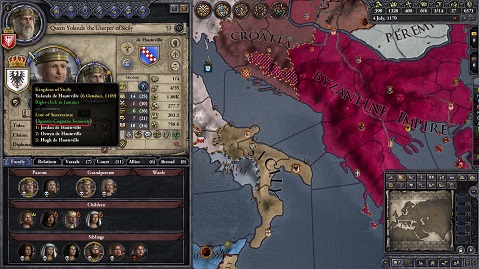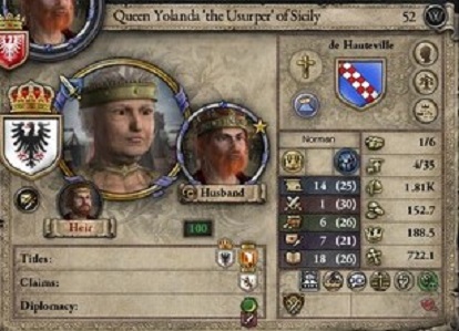 1162年末。我が妻ヨランダをシチリア王に就けるべく、シチリアに宣戦布告したのだ。 当時シチリア王位にあったのはセルビア人の幼女。 いくら祖母が先々代王の姉だとはいえ、正当性は皆無に等しい。 シチリア王国は誇り高きノルマン人の築いたオードブィル家の国だ。セルビア人の女王よりも先々代の末妹であるオードブィル家一族である我が妻の方が相応しい。 今こそ正当なるオードブィル家の女王を迎え、シチリアは混乱から立ち直るべきなのだ。 もっとも、シチリアを今の混乱状況に追い込んだ黒幕は我がハプスブルグ家なのだがな!