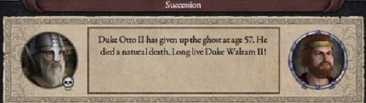 私がその知らせを受けたのは、逆賊コチルダを討伐するためにカプアへと向かう途上のことだった。 「父さんが死んだだと!?」 私の驚いた表情を見て、側近の一人が私をなぐさめるかのように言う。 「お父君のご逝去、心中お察しいたします。」 私は側近をギロリと睨み付ける。 「で、ですがこれで晴れてオットー様が公爵になられたわけでして。そのことにつきましては本当におめでとうございます。」 私の睨み顔にびっくりしたのか、側近がしどろもどろにそう言ってきた。 「まあその通りだな。」 私は睨み顔をやめて笑みを浮かべる。側近がそれを見て安堵の表情を浮かべているのが非常に愉快だ。 「ここは新公爵として、父の遺志を継ぎ、何としてもコチルダの討伐を達成させねばな。」 「は、はい。おっしゃる通りです!オットー様こそハプスブルグの家門を隆盛へと導くお方!」 「誉めすぎだ。だが、とても嬉しいぞ。私は愉快だ。」 私は上機嫌で馬へとまたがる。 「全軍に伝えよ。上ブルグンド公爵オットー・ハプスブルグの名において告げる!カプアを簒奪せし逆賊コチルダをいざ討たん!」 私の号令の下、上ブルグンド軍は統制のとれた見事な隊列で進軍を開始した。