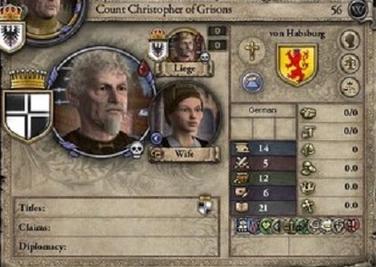 グリソンス伯クリストファー。ハプスブルグ家の初代シチリア王ワーラムの弟。シチリア王位の継承法の件以来、ワシとことごとく対立しおる。