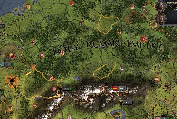 長い治世となりました。 妻暗殺後、15才の上ブルゴーニュ女公爵が見つかったのは ラッキーでした。 あと、ここまでリロードせずにきましたが今回初めてやりました。 ヴェグリア州の後継者のクロアチア王子に相続でヴェグリア州を 得ようと思っていたんですけど、男爵領あげる前にクロアチア王が 死んでしまったので、リロード後、授与して、その後相続しました。