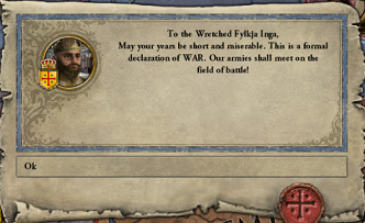 「蛮族の女王にして異教の首魁なるインガよ! これは正式な宣戦布告である!」