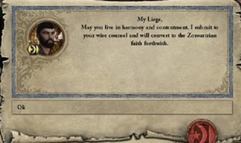 諸侯のopinionが上昇したことで、金を積めば、諸侯がゾロアスター教への改宗に応じてくれるようになったぞ!