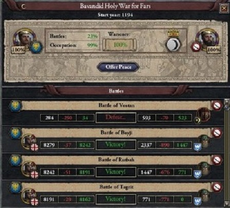 そして、戦の開始から2年経たない間に戦勝点は100となり、アッバース家はアラビア帝国にBasra一帯を割譲することを余儀なくされたのであった。