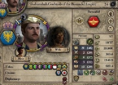 Goshtasb帝。父親譲りで外交能力が非常に高い。全体的に優れている。軍事能力が低いのがやや難なくらいか。
