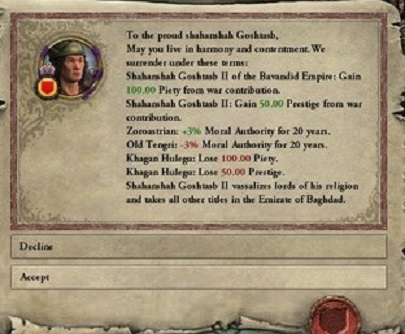 あまりの速攻ぶりにIlkhanateも対応することができず、敗北を認め講和となった。