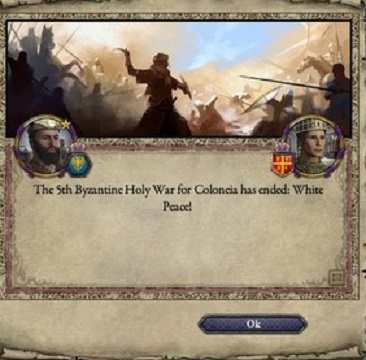 これにより十字軍は成功したのであった。 一戦も交えずに敗北を認めたアラビア帝国を、カトリック世界では「弱虫国家」と呼び、嘲笑したのであった。