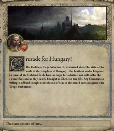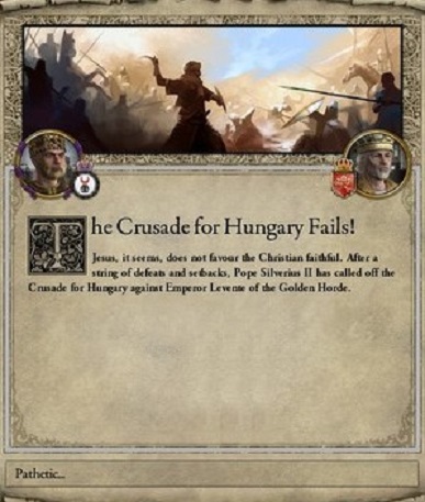 ペルシア攻略とは全然関係ないが、ハンガリーに対する十字軍が発令されたようだ。