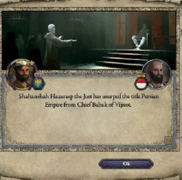 もうアラビア帝国の勝利は確実である。HazaraspはBavandid家の悲願を達成するのは自らであると確信し、満足感に浸っていた。 しかし、そんなHazaraspに釘を刺すかのような一大事件が起きる。