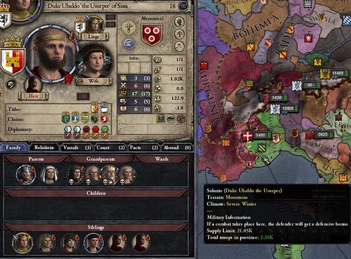当然後継者は彼に確定だ。これでモデナ公を引き継ぎ、無血で直轄1、封臣1ゲットだ。
