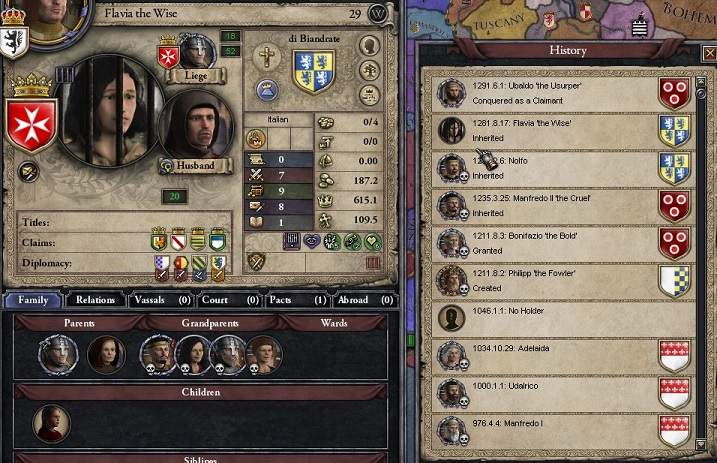 いったいこれどうやったんですかね? ウバルドは領地無、私戦で奪えるわけはないし、ブランドラーテ家から嫁や婿取った記憶はないから血縁継承権もないはず。 なんか、称号を戦争無しで請求してもぎ取る方法ってあるんでしょうか・・・?