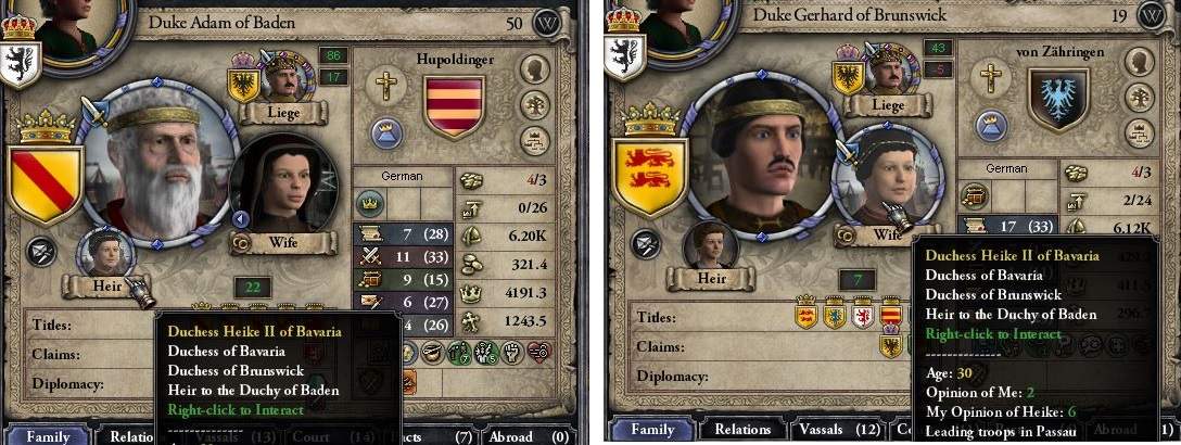 帝国中西部の名家バーデン家の長女にして後継者が、バイエルン女公ハイケであり、 さらにそのハイケは、帝国北部の大領ブランズウィック公と婚姻している。 つまり次の世代では、バーデン・バイエルン・ブランズウィックの三家が統合され、巨大な一家を形成する・・・と思われたのだ。