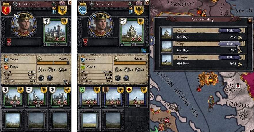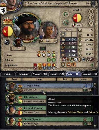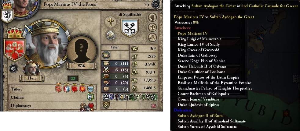 この仕様だとギリシャ王位は少し難しいかも・・・だが、イスラム国家が弱体化するなら良いか。 アイユーブ・ルームの婚姻同盟相手より、キリスト教徒からコンスタンチノープルを奪う方が多分楽だし。