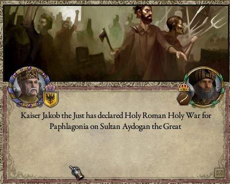 38年の年末、先ごろアイユーブからトリポリタニアを獲得した皇帝が、次は十字軍で弱っているルームセルジュークへと聖戦を布告。