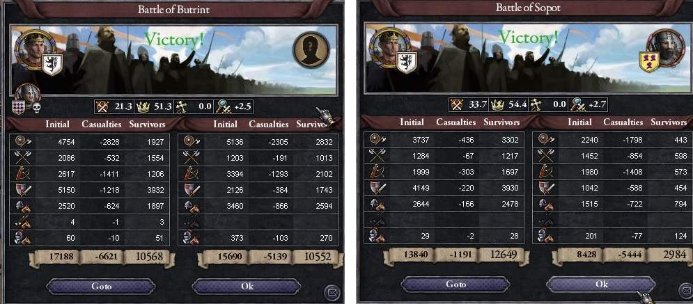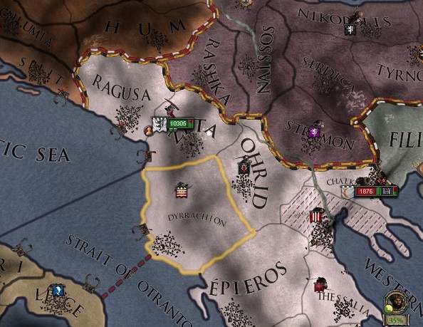 1324年5月Butrint、25年4月Sopotの二度の会戦でヴェネチア傭兵軍を壊滅に追い込んだ我が軍は、戦勝点50%余りで各地の占領に取り掛かる。