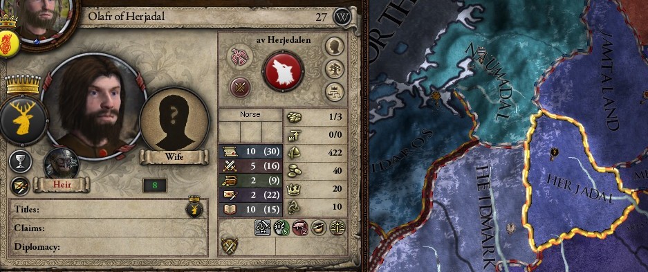 王になるまでの間に英雄の息子が死に、動員兵力も弱体化している今、Haraldrが宣戦しない理由は無かった