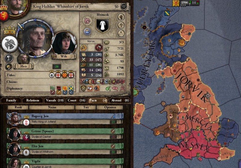 視点をスカンジナヴィア半島に戻す 周辺部族にもRagnarrの息子がおり、その勢力はHaraldrにとって無視できないものであった しかしSigurdr'Snake-in-the-eye'は既に没しており、長子のKnudが跡を継いでいた