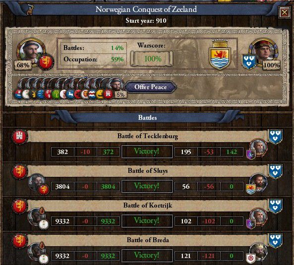 部族が封建領主に勝利するという快挙であった。 勝利の勢いのまま、Bertilは次なる聖地の確保へ向かう。 デンマークの大族長、Sjaellandである。 聖地のみならず、完全服従を求めて宣戦を布告したのであった。