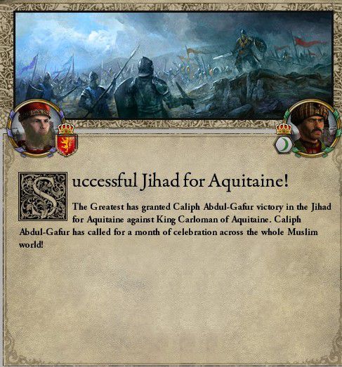 イェルサレムを失陥したカリフはお返しとばかりにジハードを宣言、アキテーヌを奪取せんと進軍を始める。