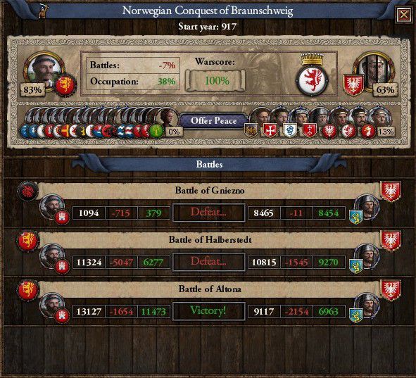 さて、残す聖地は1つである。 ここまで来たら取るしかない、という訳で聖地を目指して宣戦、ポーランドの地にヴァイキングが大挙して押し寄せた。 Bertilも最後の大盤振る舞いとばかりに傭兵を大量雇用、総兵力は2万に迫る勢いであったという。