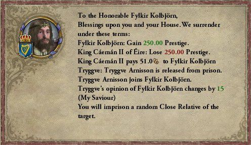 &ref(): File not found: "a_Kolbjorn.jpg" at page "AAR/征服王に俺はなる!第二部 ~海賊編~/09_Kolbjorn"; 解放戦争を仕掛けたアイルランド王は戦勝点30%で降伏してきた。失うものが少ない場合は諦めるのも早いのかな?
