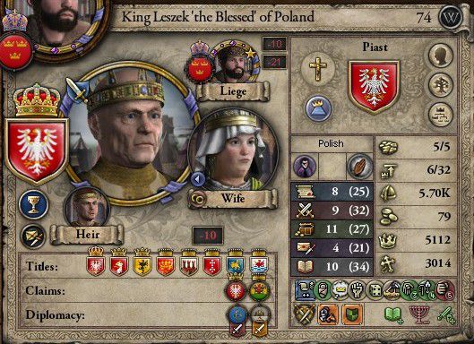 ポーランド王Leszek、先王Trojdenの兄にあたる 熱狂的なキリスト教徒であり、"Blessed"の異名を取る