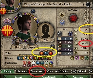 187人も家臣がいます。このため税金が莫大で38400D溜まってます