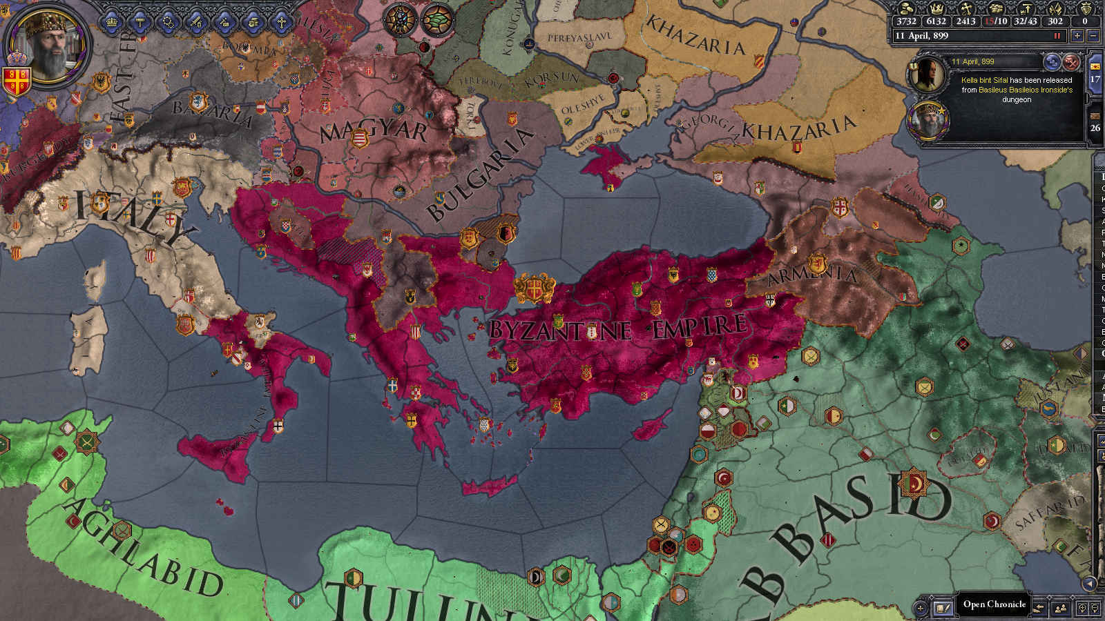 数えてみるとだいたいDejure領域を版図に入れたくらいでテマのリミットが来るみたいですね、まあ一人に複数テマ持たせればいいのですが、どこで属州制にするかの見極めが難しいでしょうか。