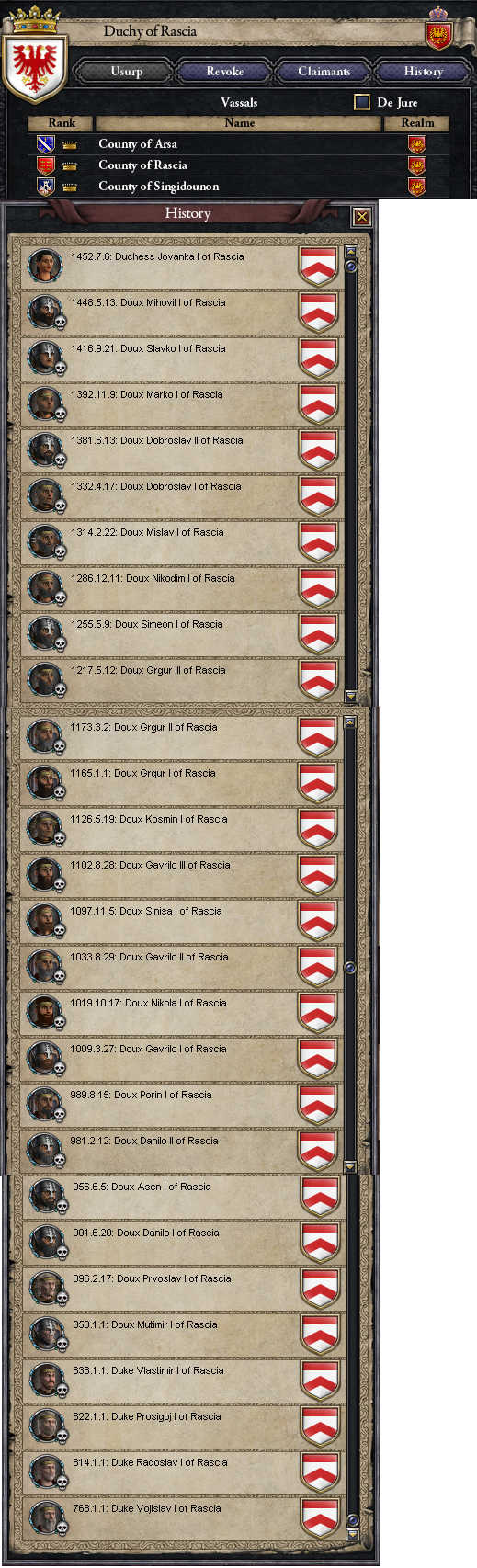 ラスキア公爵は初代バシレイウス帝のときにOffer Vassalizationで臣下にしたのですが、