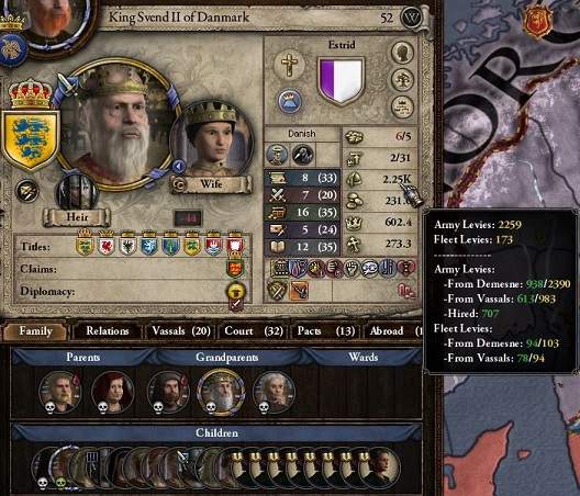 デンマーク王スヴェン2世は片足を失うわ、総兵力が2000少しに打ち減らされるわと、かなりの打撃を被っている。 我がウプランド公国は、伯領4つを直轄してその兵力は2500にまで向上。傭兵を1500も雇えば充分勝てる。