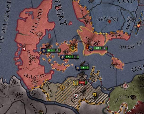 なお戦争は、この後、デンマーク軍は一兵たりとも遠征先から帰って来ることはなく、 我が軍は無抵抗でシェラン・ユラン・スコーネなど王国主要部を占領。 73年6月、ゲルマン信仰の聖地であり、北欧屈指の豊かな領土でもあるシェラン島を割譲せしめることに成功した。