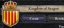 王位創設にはde jure領域の51%以上の実効支配が必要です。最も簡単な方法は、軍事力を用いた併合です。特に異教徒から領地を奪い取る場合は、自動的に聖戦が可能なので、大義名分(CB)の獲得に策を弄する必要さえありません。 一方で、もうひとつの方法が婚姻関係を用いた公国の統合で、これはブルグンド王国を創設した際に(部分的に)用いた方法です。軍事力を養う必要がない点がメリットですが、一方で、手の込んだ準備・計画が必要で、実施には時間がかかり、必ずしも思ったようにはうまくいかない場合もある、など安定感はありません。