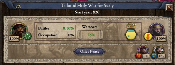 エジプトの覇者、トゥールーン朝がシチリアを求めて宣戦布告してきたのである。 相手は動員兵力14000を誇る大国である。流石にシチリアだけでは勝ち目がない。